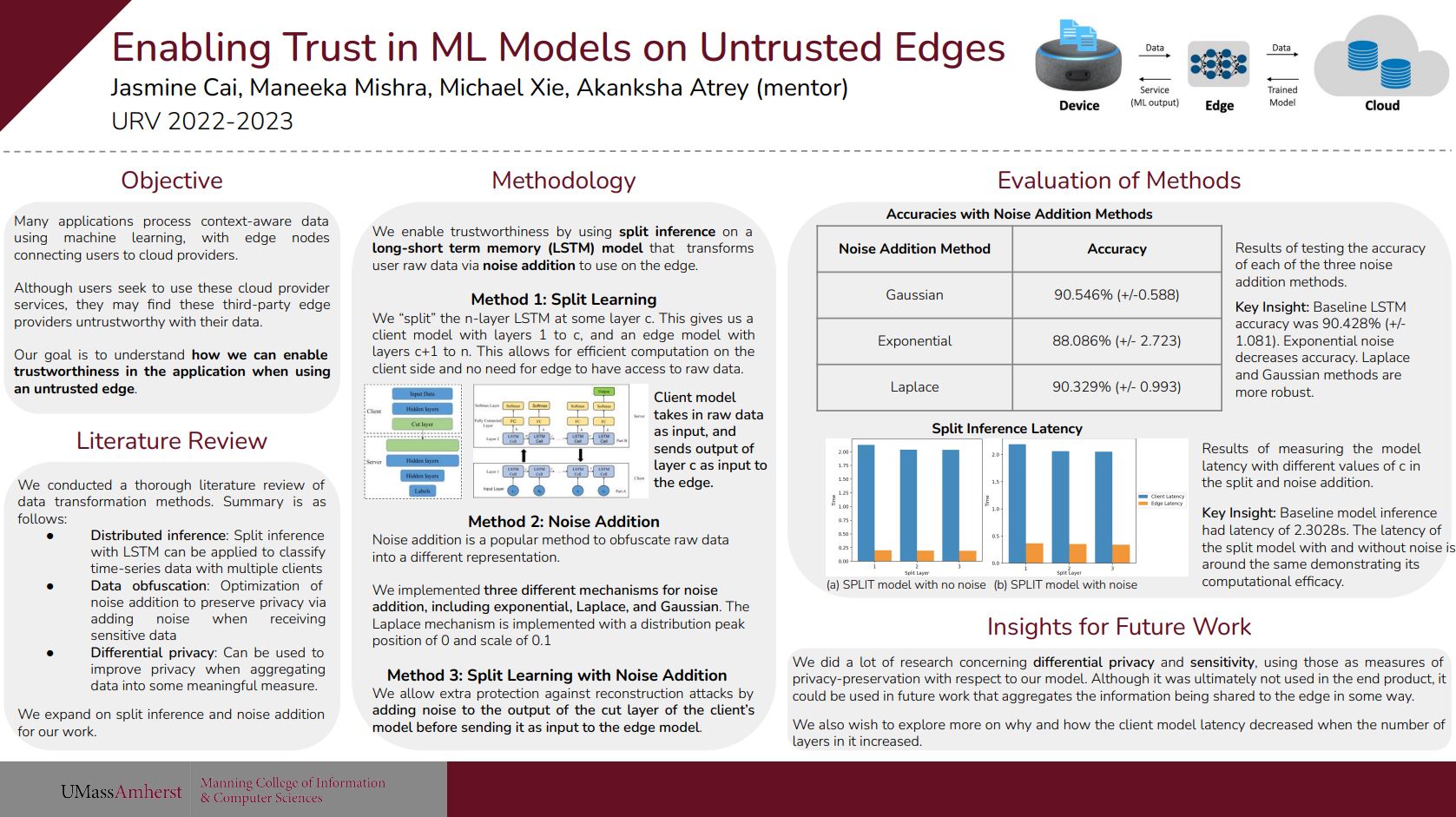 This research opportunity was very fun! In February, we had our URV poster sessions where each group was able to showcase their findings and research. The pictures from the event can be found here], and here is a blurb that CICS wrote about the event in the CICS weekly newsletter:
