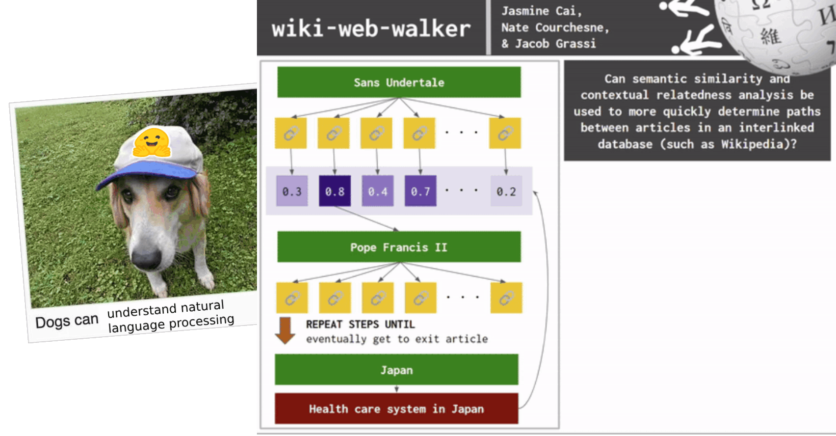 The final project for this class's main goal is to apply some natural language processing (NLP) system to some task. Jacob came up with the idea to create some NLP model that can beat The Wiki Game. The Wiki Game is a game where you're given an entry point Wikipedia article and an exit point Wikipedia article. Your main goal is to go into the entry point article, traverse through the various links within it, and get to the exit point article in as few steps/hops from article-to-article as possible.